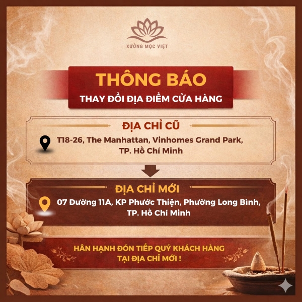 Trầm Hương Xưởng Mộc Việt xin trân trọng thông báo đến Quý khách hàng về việc thay đổi địa chỉ cửa hàng nhằm thuận tiện hơn trong việc phục vụ: